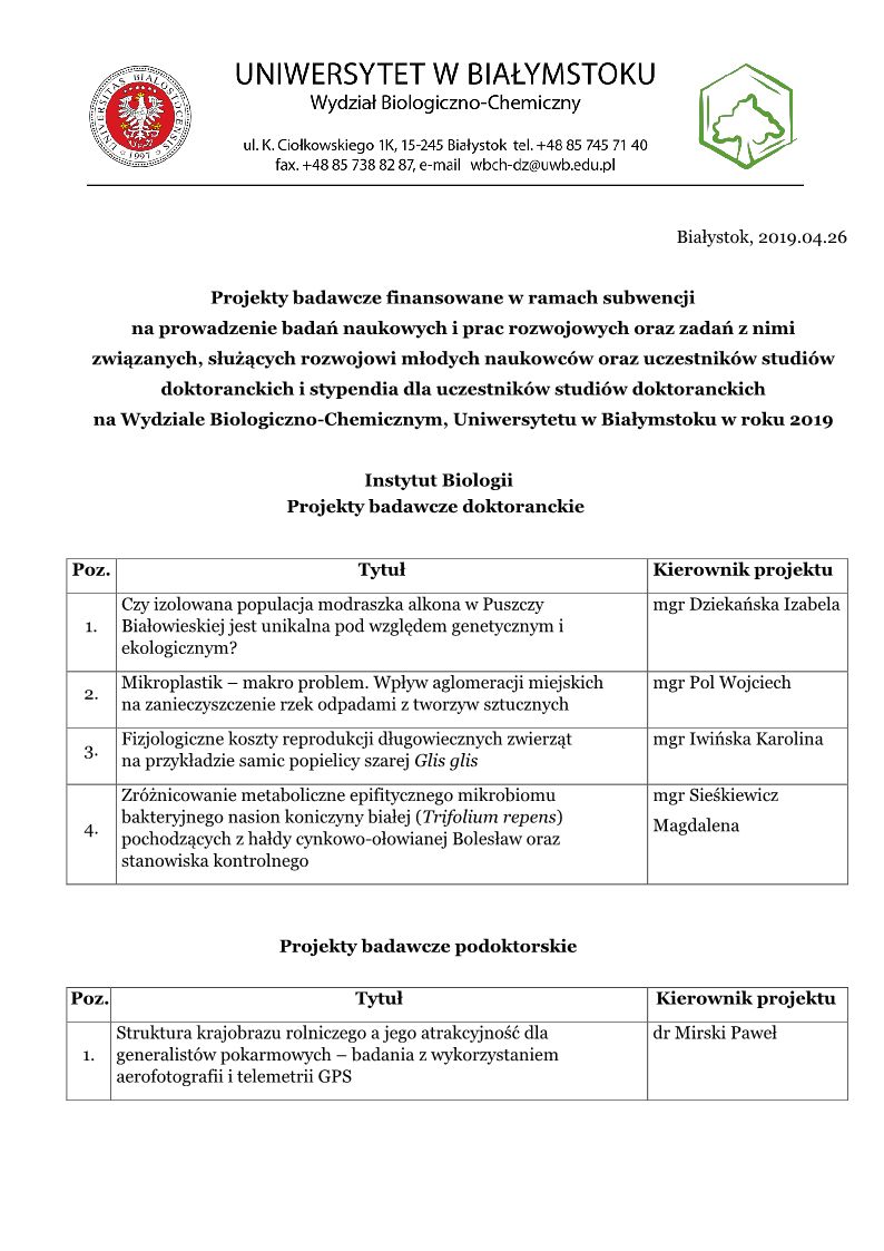 W ramach naszego serwisu www stosujemy pliki cookies zapisywane na urządzeniu użytkownika w celu dostosowania zachowania serwisu do indywidualnych preferencji użytkownika oraz w celach statystycznych. Użytkownik ma możliwość samodzielnej zmiany ustawień dotyczących cookies w swojej przeglądarce internetowej. Więcej informacji można znaleźć w Polityce Prywatności Uniwersytetu w Białymstoku. Korzystając ze strony wyrażają Państwo zgodę na używanie plików cookies, zgodnie z ustawieniami przeglądarki.