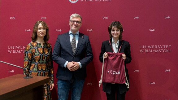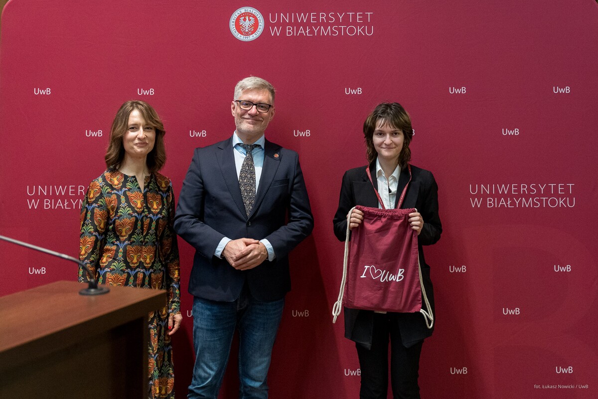 Uroczystą Inaugurację rozpoczął prorektor uczelni ds. kształcenia dr hab. Krzysztof Korotkich, prof. UwB., dr hab. Marta Kowalczuk-Walędziak, prof. UwB oraz dr Maryna Michaluk, którzy powitali uczniów w progach Uniwersytetu w Białymstoku, życząc im mnóstwa nowych inspiracji i wspaniałych naukowych przygód.