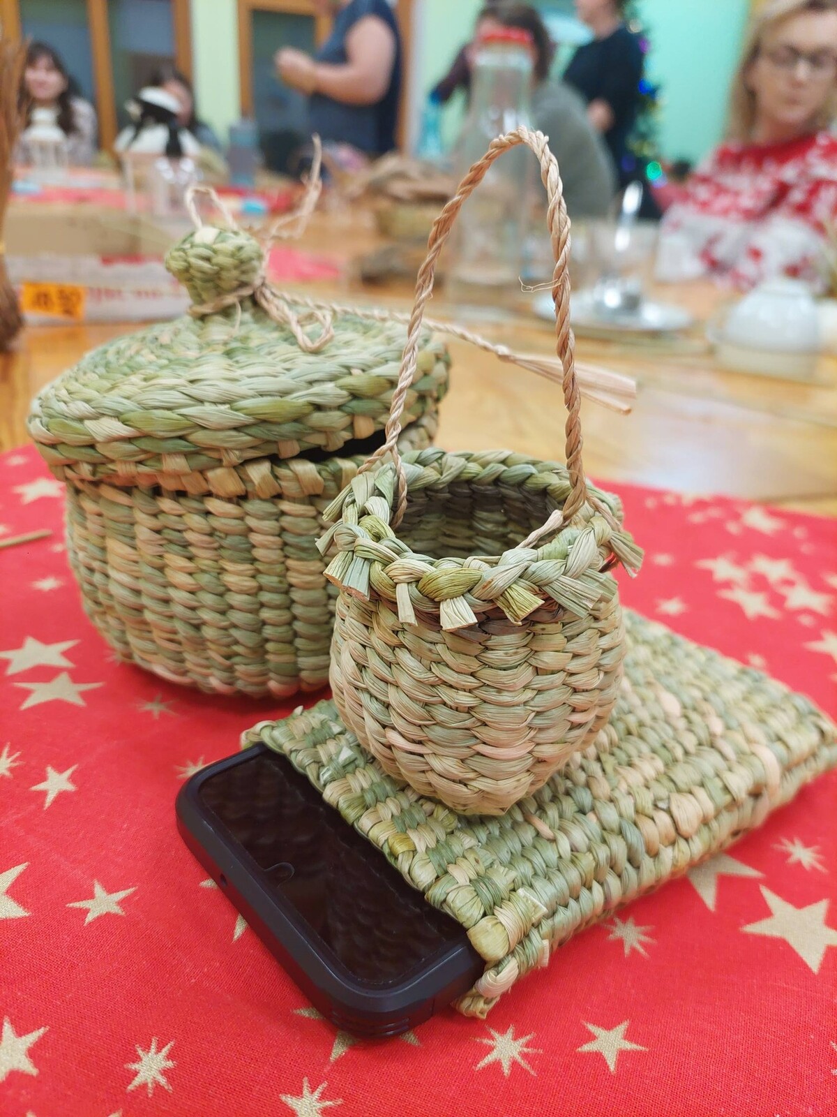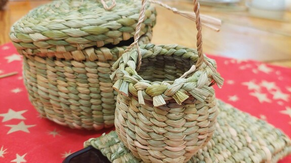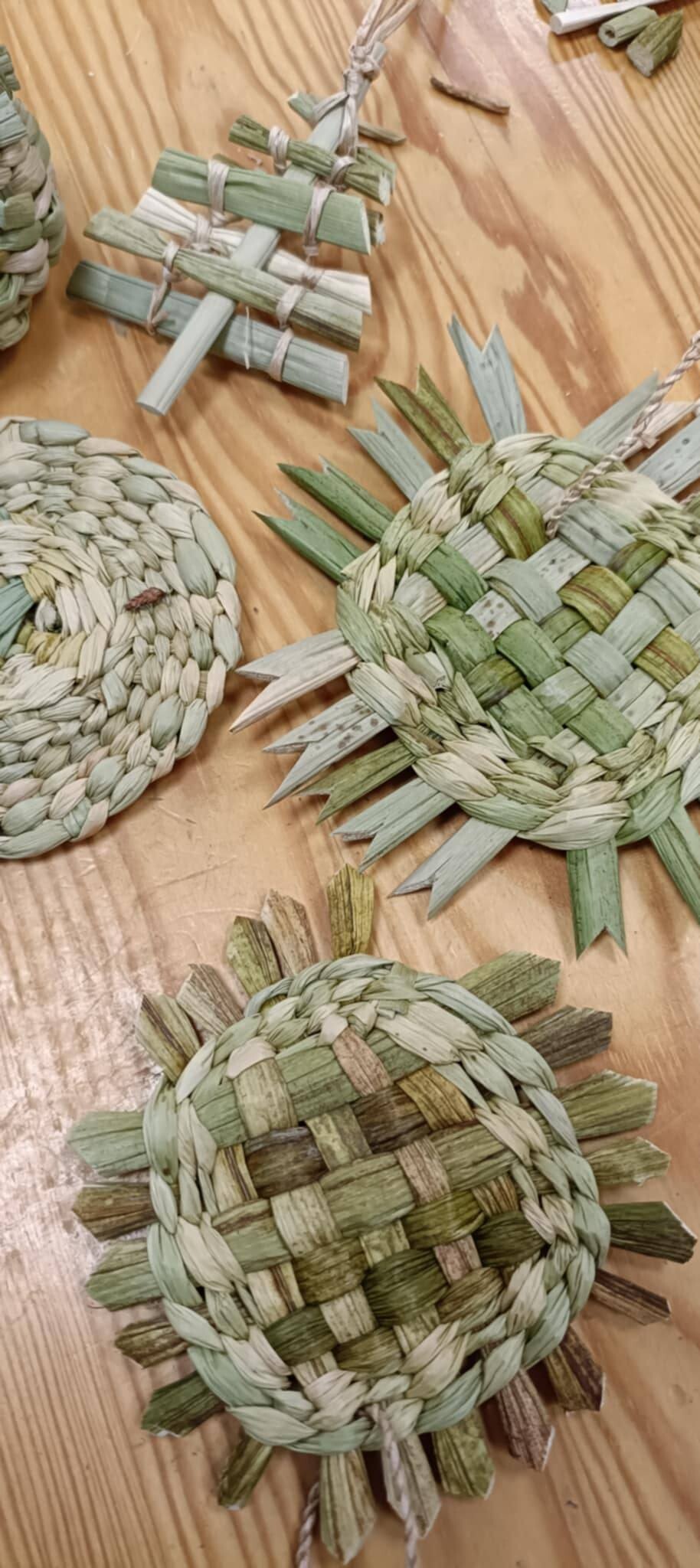 Common club-rush, broadleaf cattail, dandelion, ribwort plantain, yellow pine, and black cherry become baskets, small baskets, pouches, holiday decorations, bowls, phone cases, coasters, and much more.