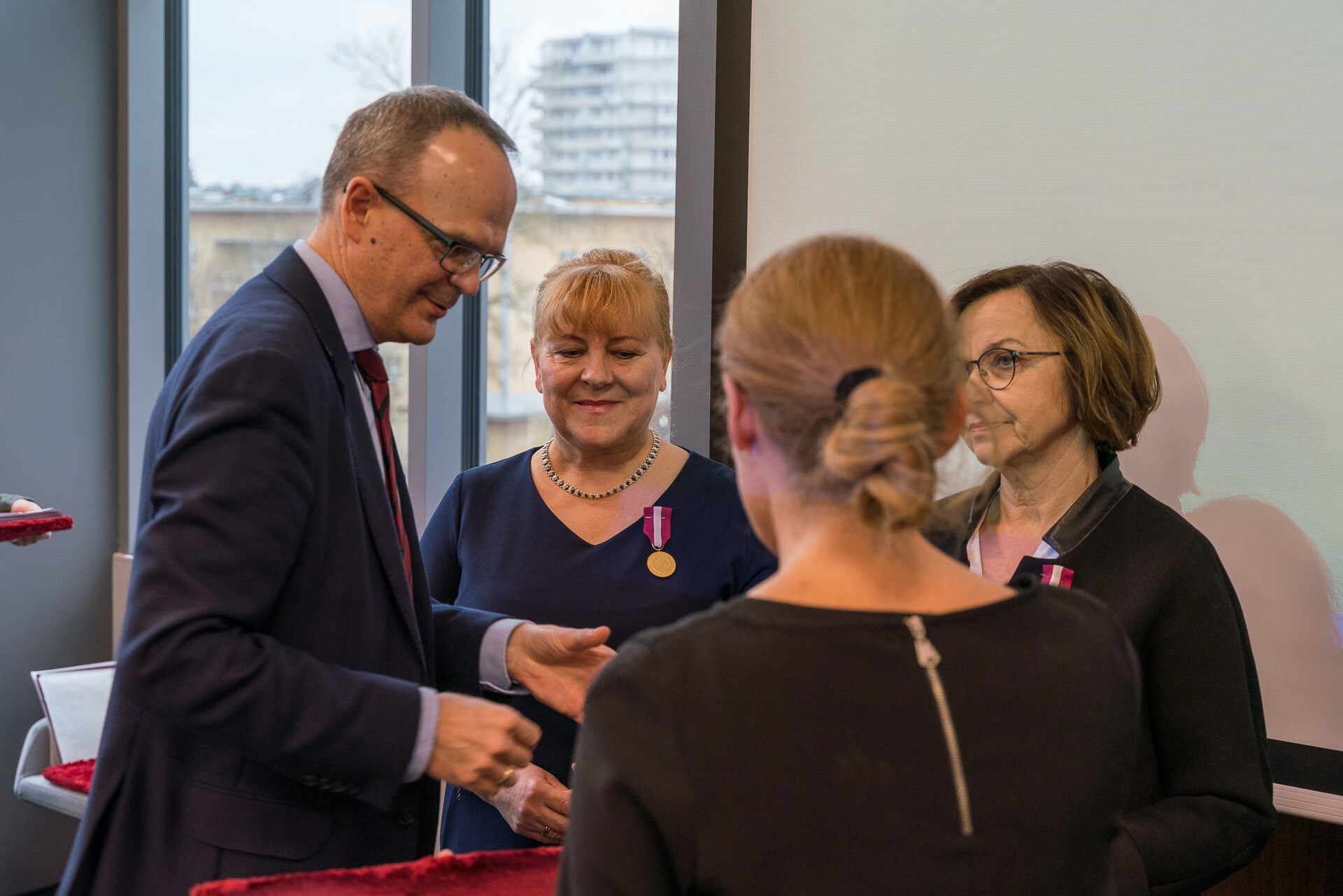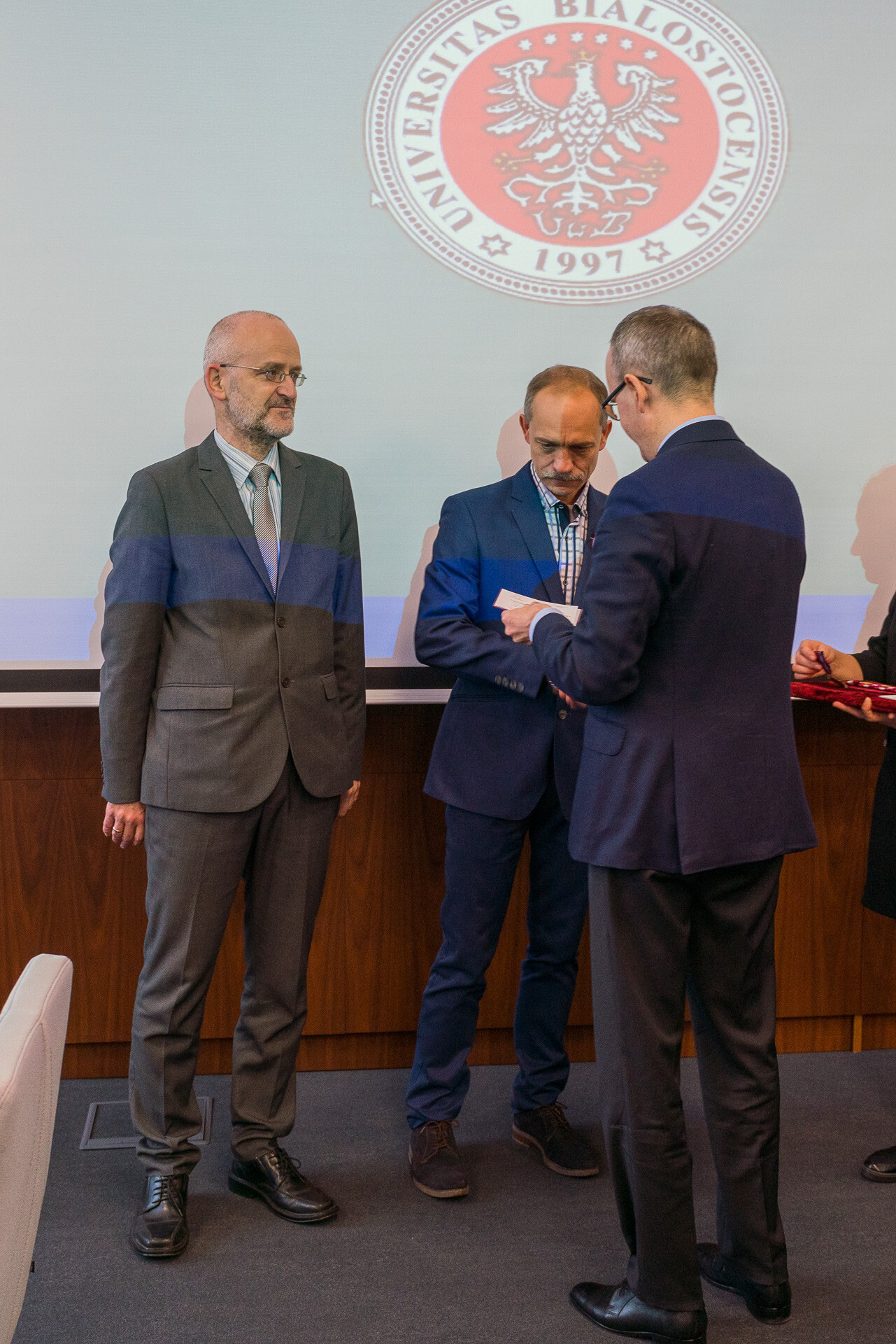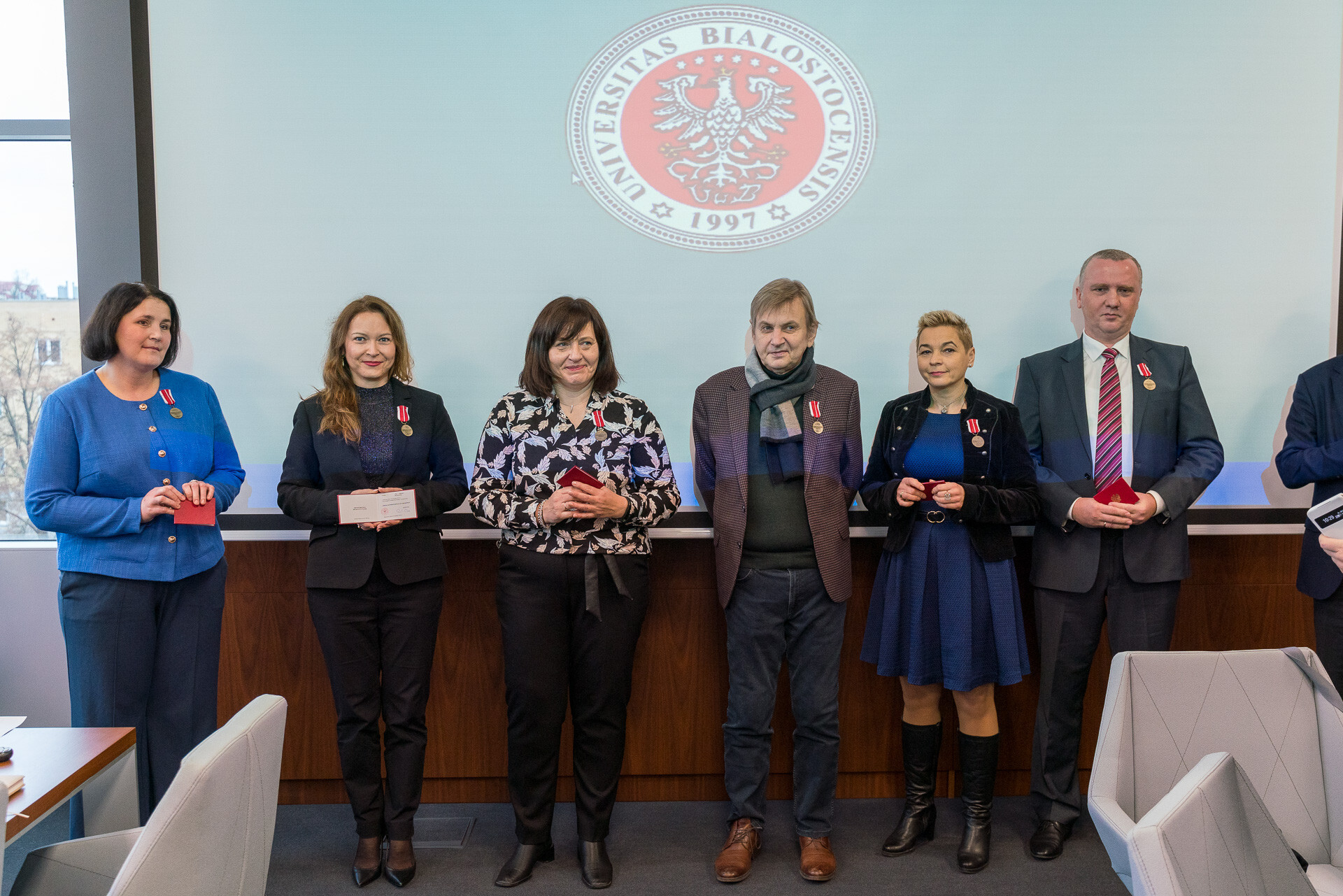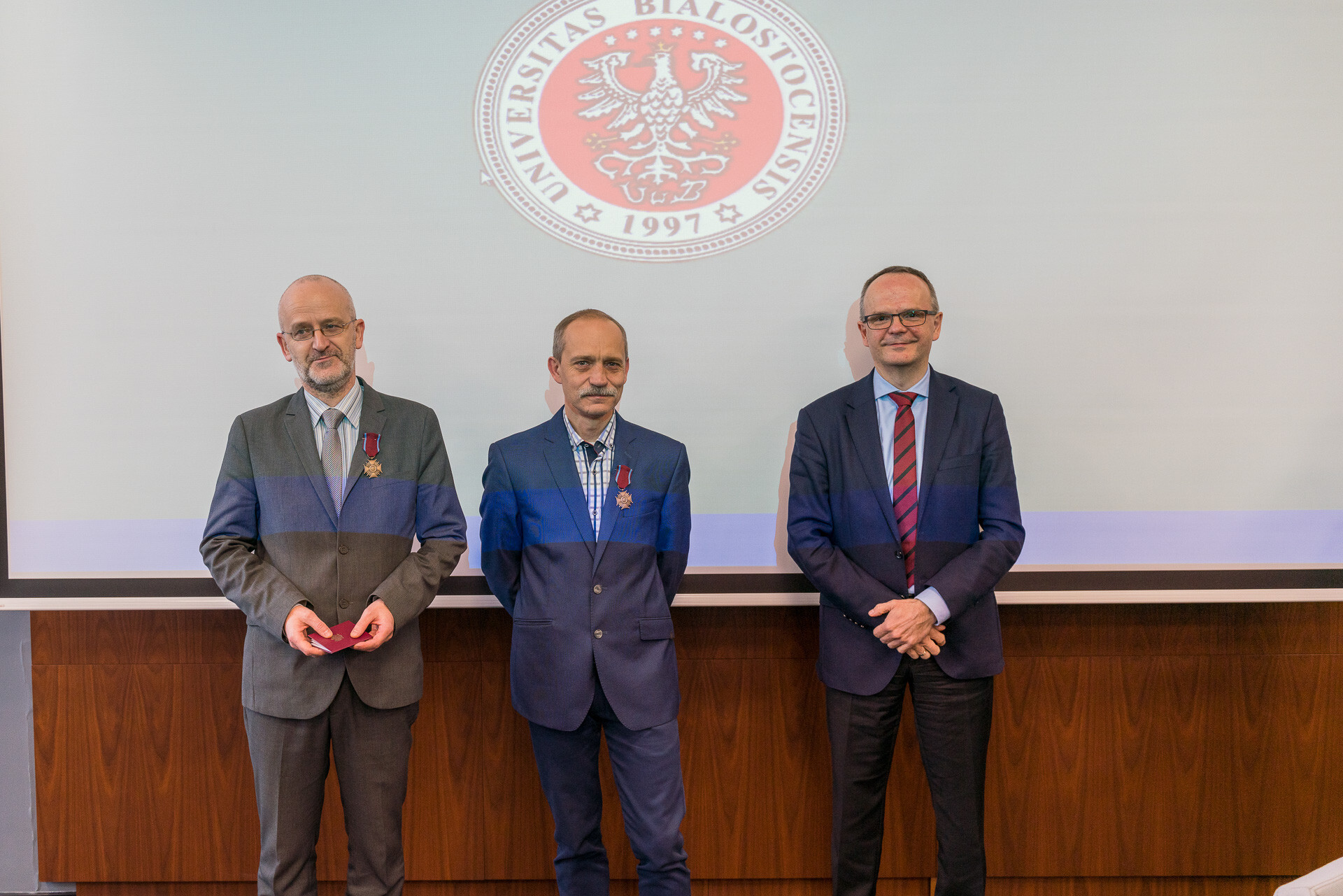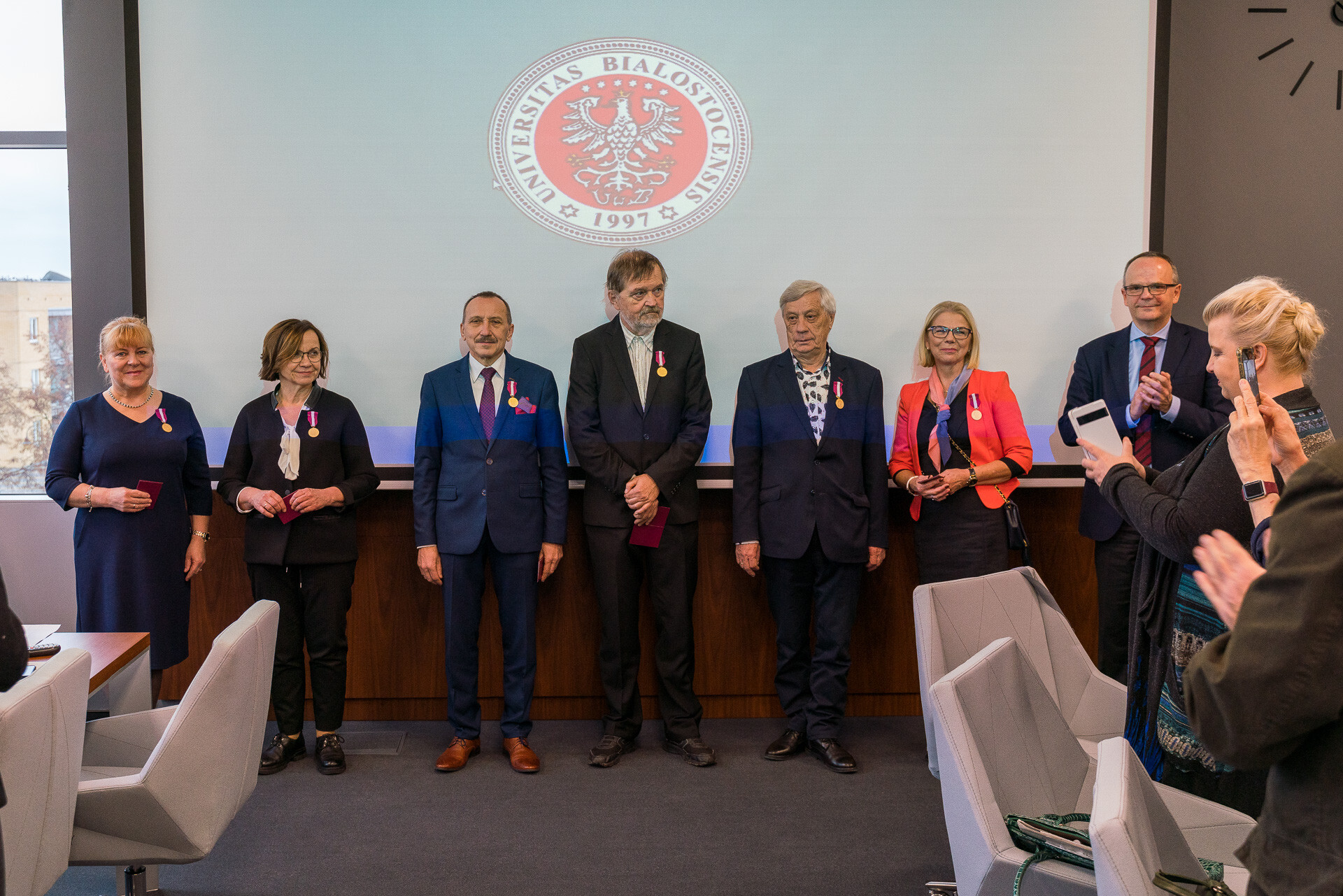 Rektor UwB wręcza medale zasłużonym pracownikom Uniwersytetu w Białymstoku (Fot. UwB)