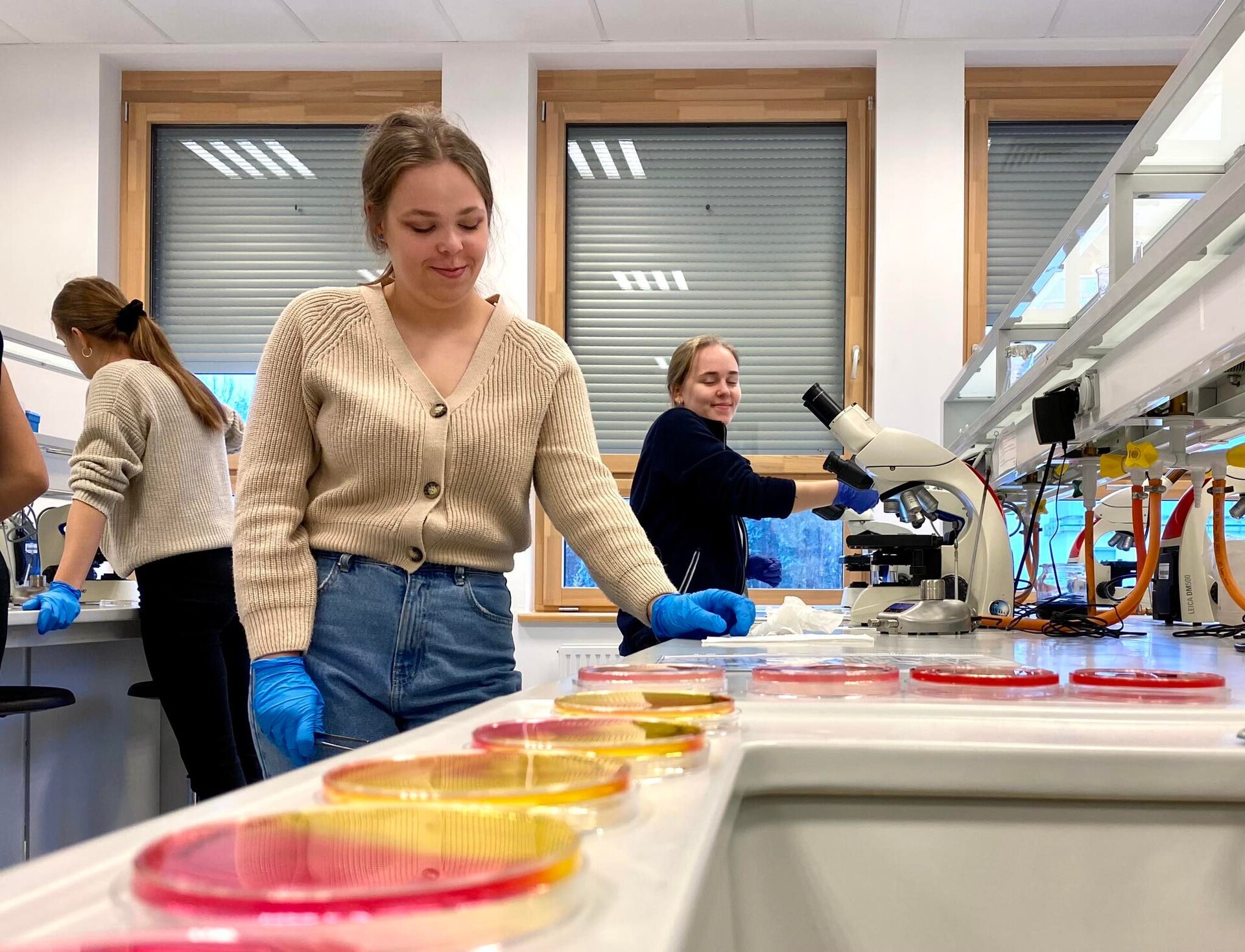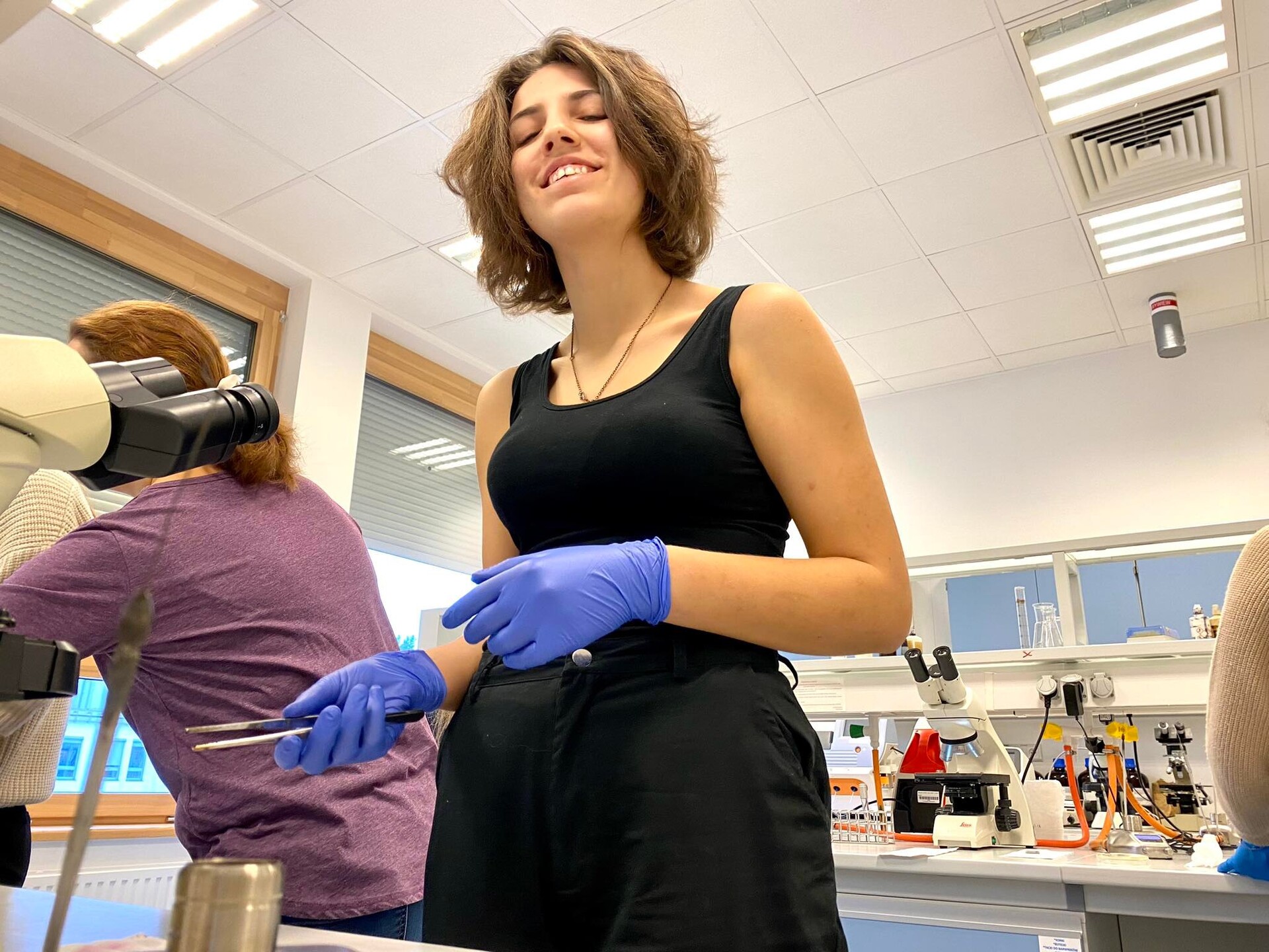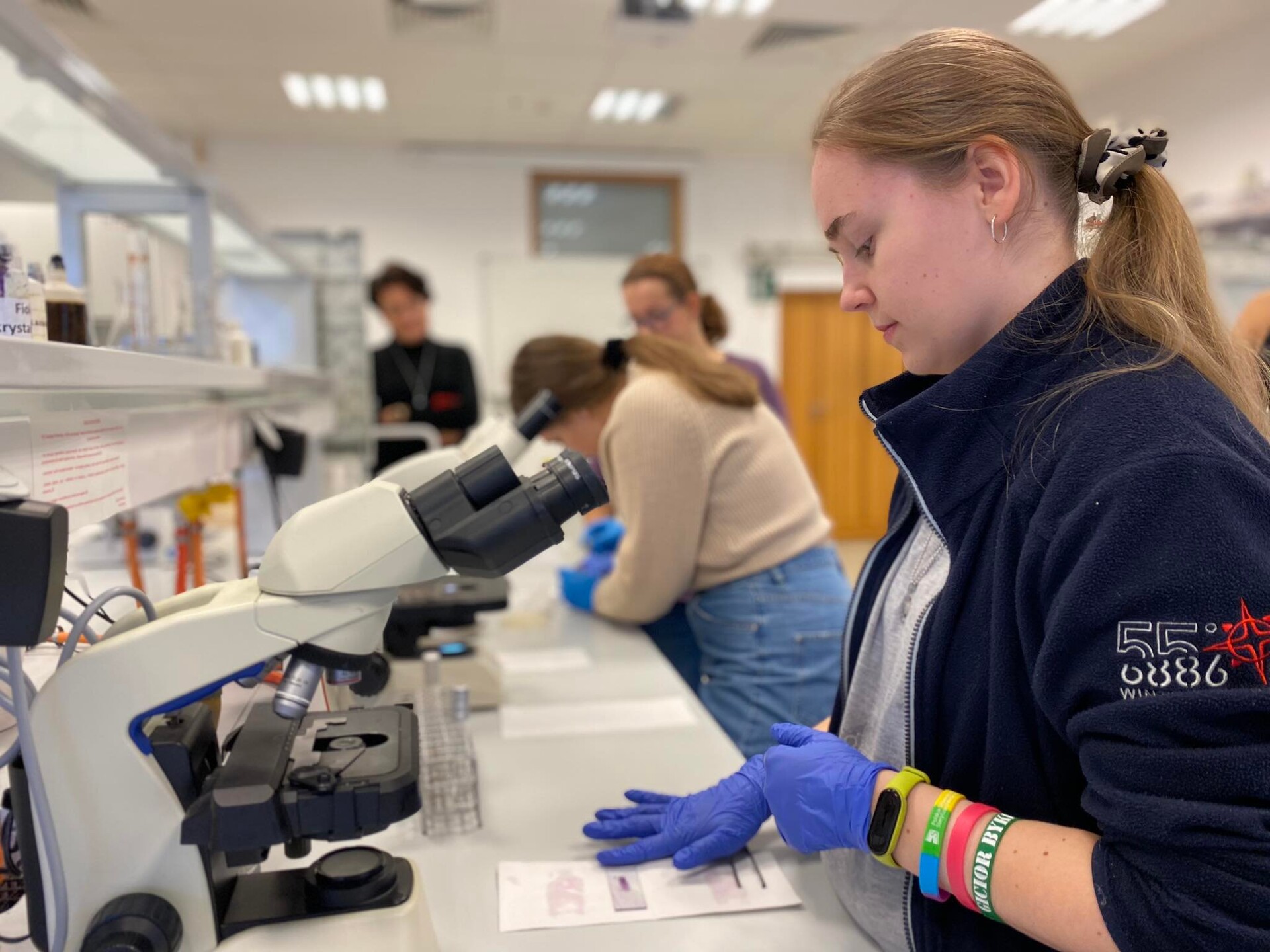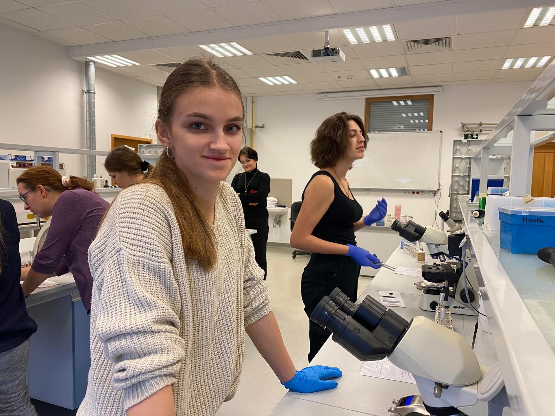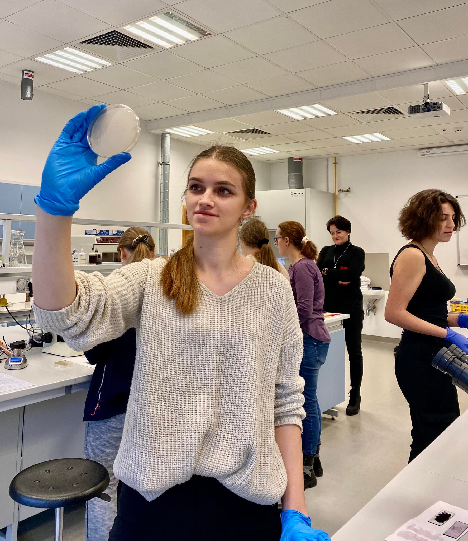 Uczennica ZSR w czasie zajęć laboratoryjnych w Katedrze Mikrobiologii i Biotechnologii