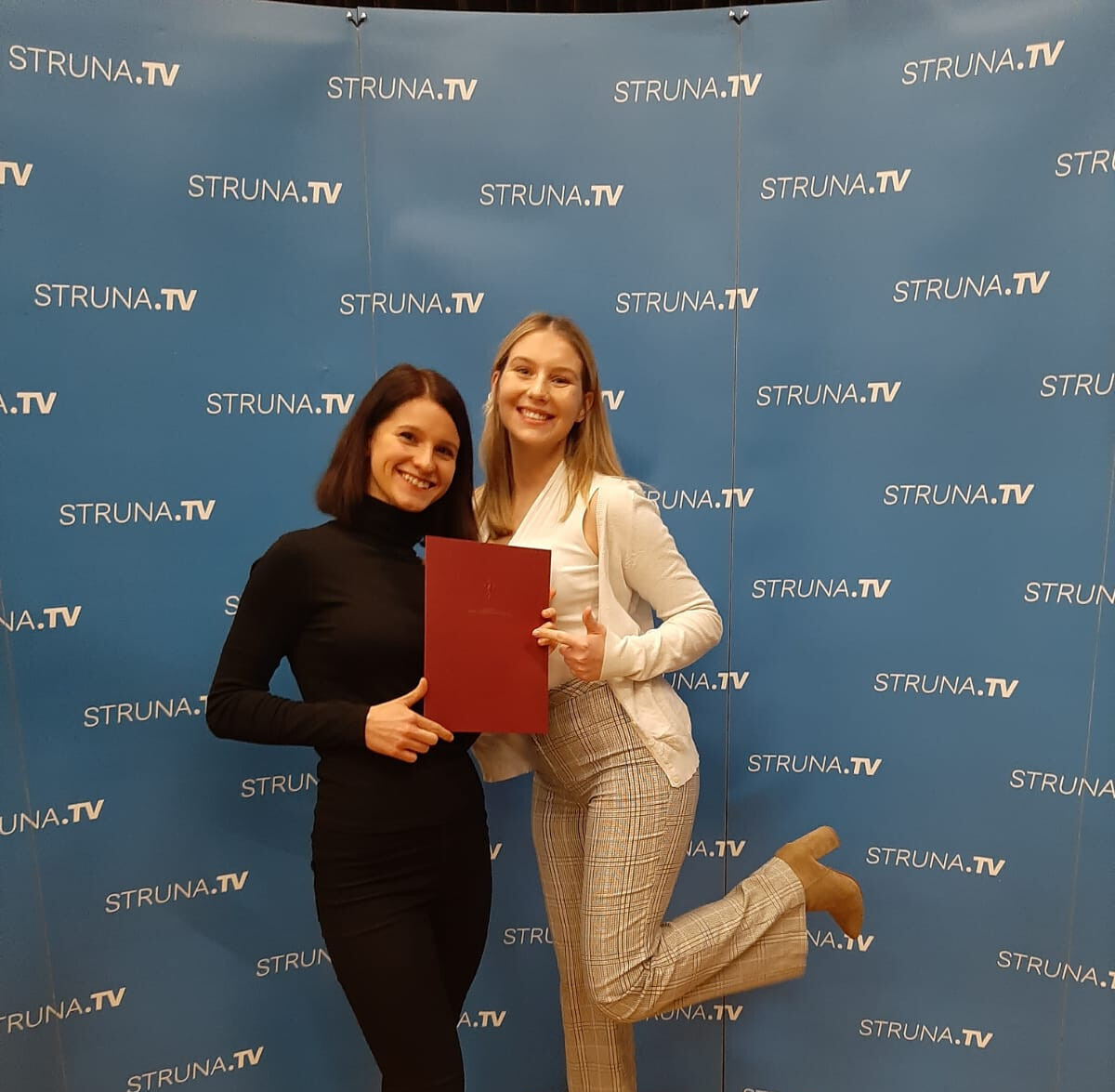 Reprezentacja KNB odbierająca wyróżnienie w kategorii Koło Naukowe Roku 2022 r. w konkursie StRuNa